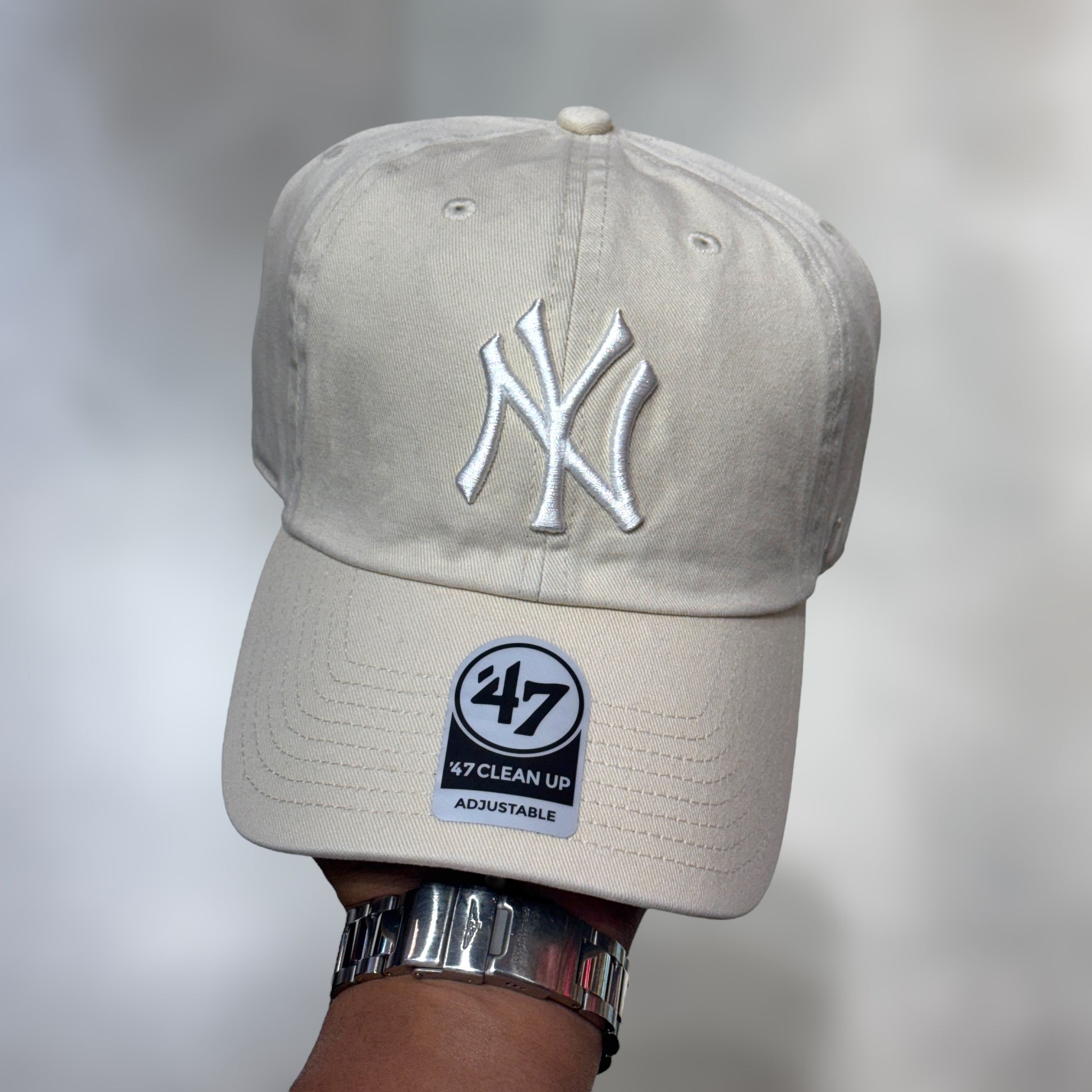 47BRAND CLEAN UP NY YANKEES BEIGE WHITE LOGO UNDERVISOR SKYBLUE